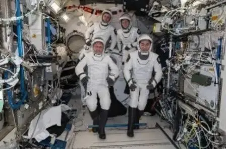 ▲4名宇航员在国际空间站