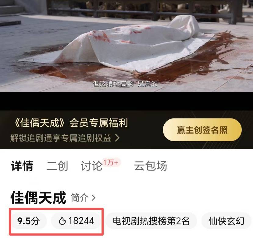 不过,眼下这两部剧还没来,倒是古装大剧《佳偶天成》抢先开播,该剧仅播两个小时,热度就飙升至18000,同时实现口碑大爆,评分高达9.5,今年真正的黑马爆款终于出现了!