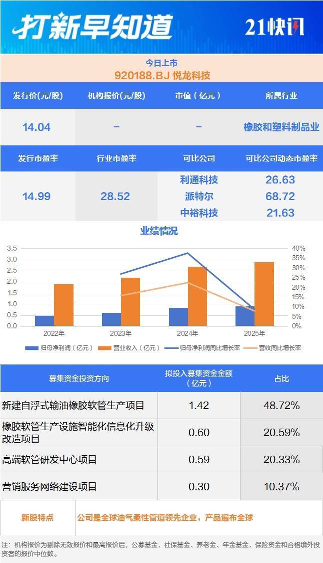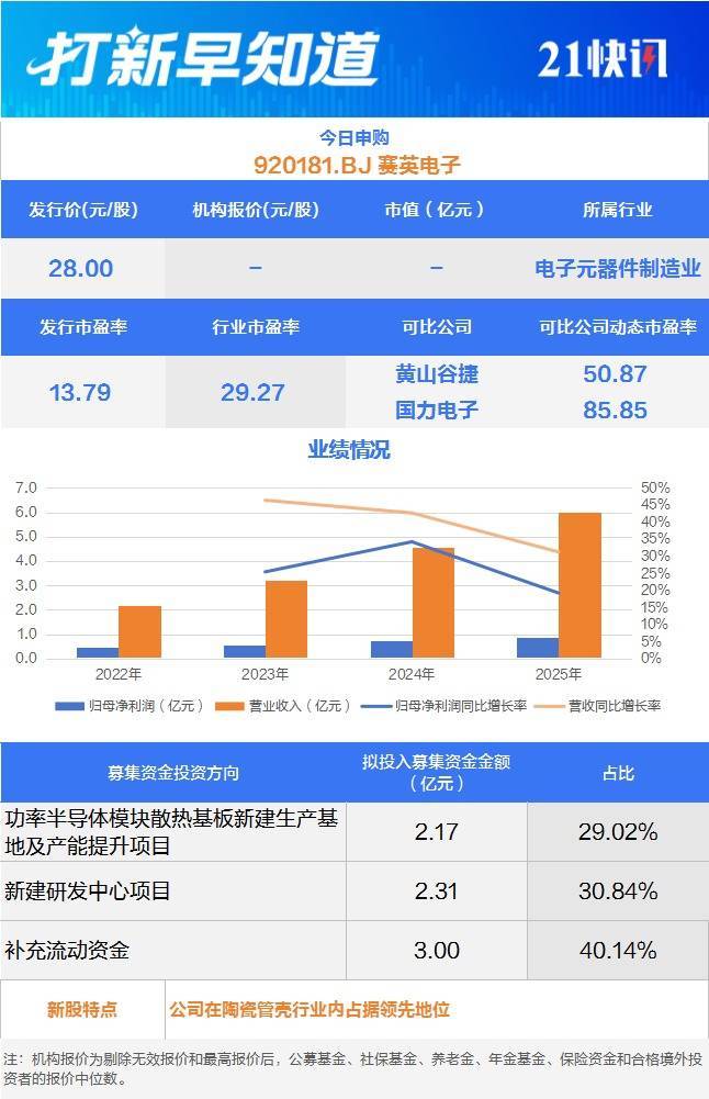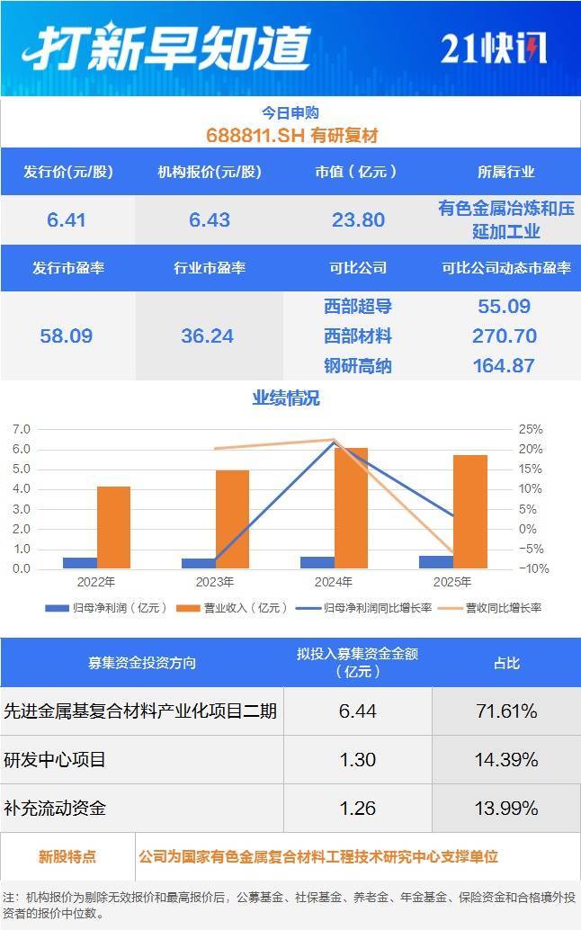 3月30日,可申购科创板的有研复材(688811.SH)与北交所的赛英电子(920181.BJ),另有一只新股上市,为北交所的悦龙科技(920188.BJ)。