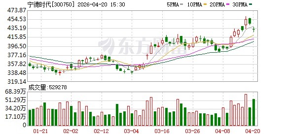 4月20日晚间,宁德时代发布股东询价转让定价情况提示性公告,经向机构投资者询价,上述股权转让初步确定转让价格为410.34元/股。此价格相比宁德时代最新收盘价(432.5元/股)折价约5%。